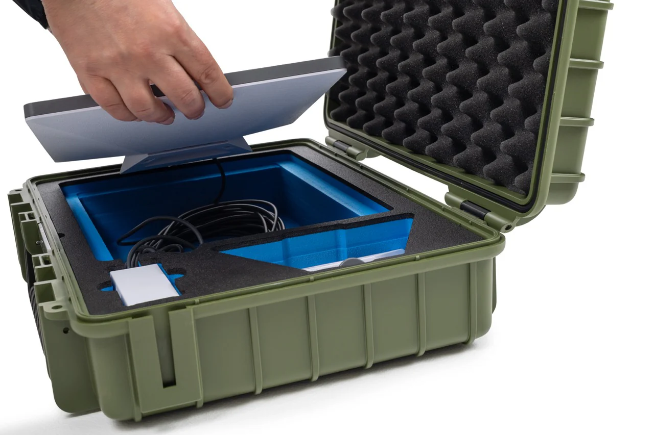 Der Transportkoffer bietet maximalen Schutz vor Stößen, Wasser, Staub und extremen Temperaturen. Er enthält einen angepassten Einsatz, der speziell für das Starlink-Mini und dessen Zubehör entwickelt wurde. Dadurch ist sichergestellt, dass das Equipment während des Transports fest fixiert ist.